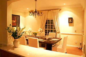 | Villa Chimanimani is located in one of the best areas in Somerset West. Featuring 4 en-suite bedrooms, thatch roof, a stunning renovated guest cottage, courtyard, fully equipped kitchen, lounge, bar, entertainment room, beautiful shaded and mature garden, pool, 2 Fire Places, outdoor furniture, barbeque area, Underfloor heating, Music in- & out- side, Wireless ADSL, 4 Sat. TVs & DSTV, 4 wireless phones, 52 outside spotlights for evening atmosphere, highly sophisticated alarm system, electrical gate, 2 open garages and parking to facilitate app. 5 cars and Maid and Gardner services for 2 days a week included. Your dream will come true |