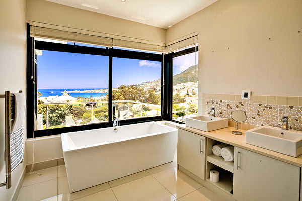 This modern spacious five en suite bedroom villa enjoys exceptional views being located within close proximity to Camps Bay beach and distinctive Rotunda. The main open plan living room, which features an impressively engineered steel and glass floating staircase, gives on to expansive sundeck terraces commanding direct beach and Lions Head views. All the en suite bedrooms are generously proportioned and individually appointed. The main living areas flow pleasingly to create an ideal entertaining area, accommodating many guests either within or in terms of al freco dining. The tone is contemporary, warm and natural. | |